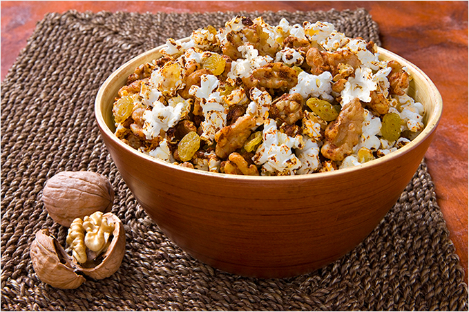3 tazas bien medidas de palomitas de maíz sin mantequilla, ¡Pero con tu mix de nueces favoritas! (1/2 tz)